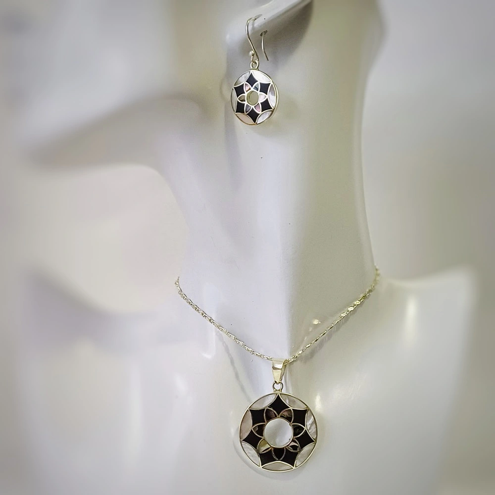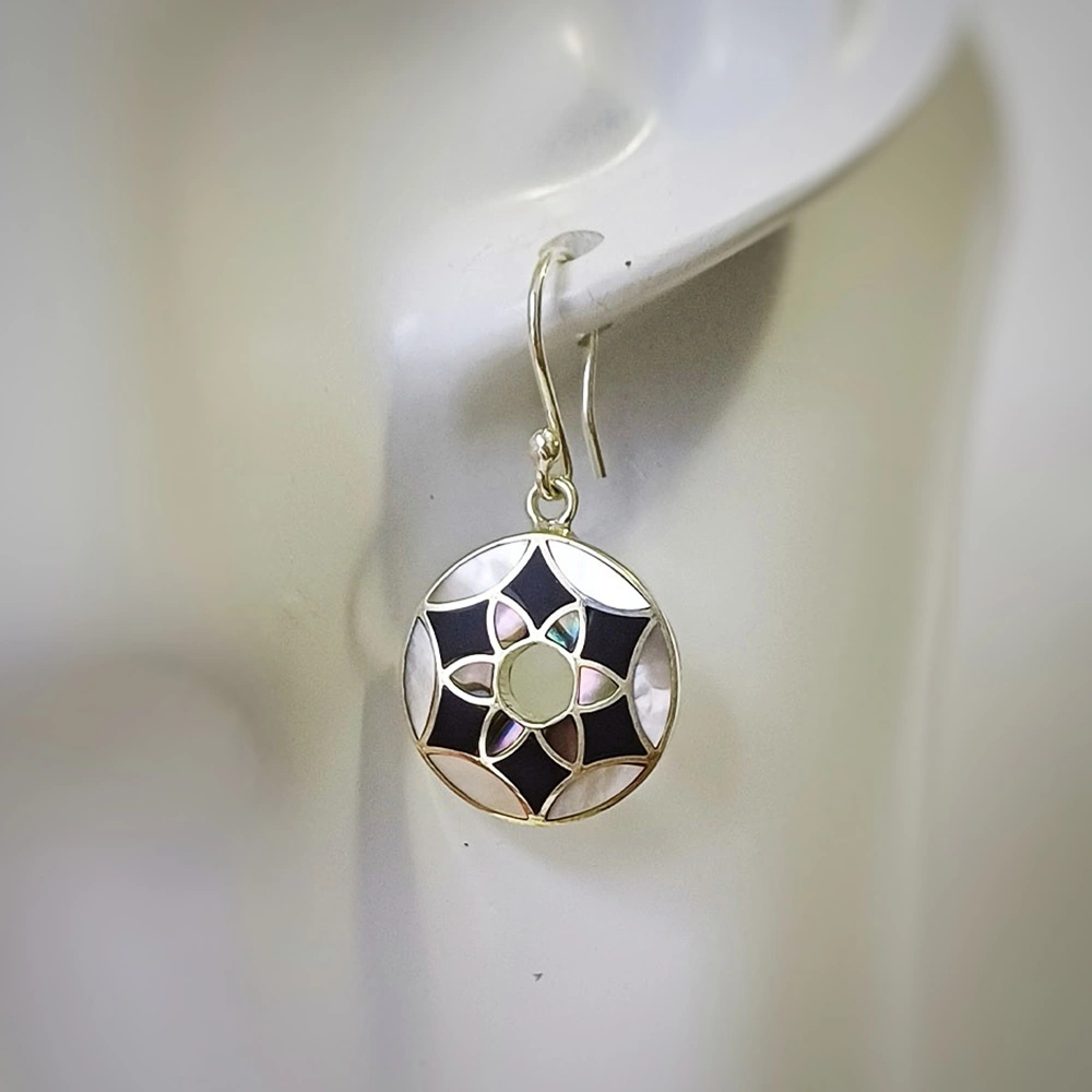 Göttliches Mandala Perlmutt Nacre Onyx Ohrringe