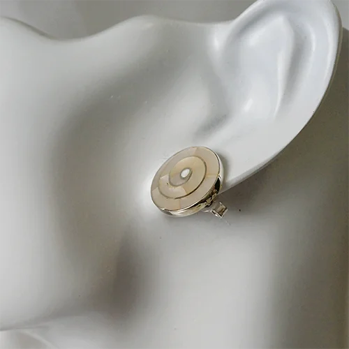 The Spiral Mother Pearl Stud Earrings feature a graceful spiral design accented with lustrous mother of pearl. Their elegant shape can symbolize growth and transformation, making them a meaningful addition to any jewelry collection. Perfect for everyday wear or special occasions.